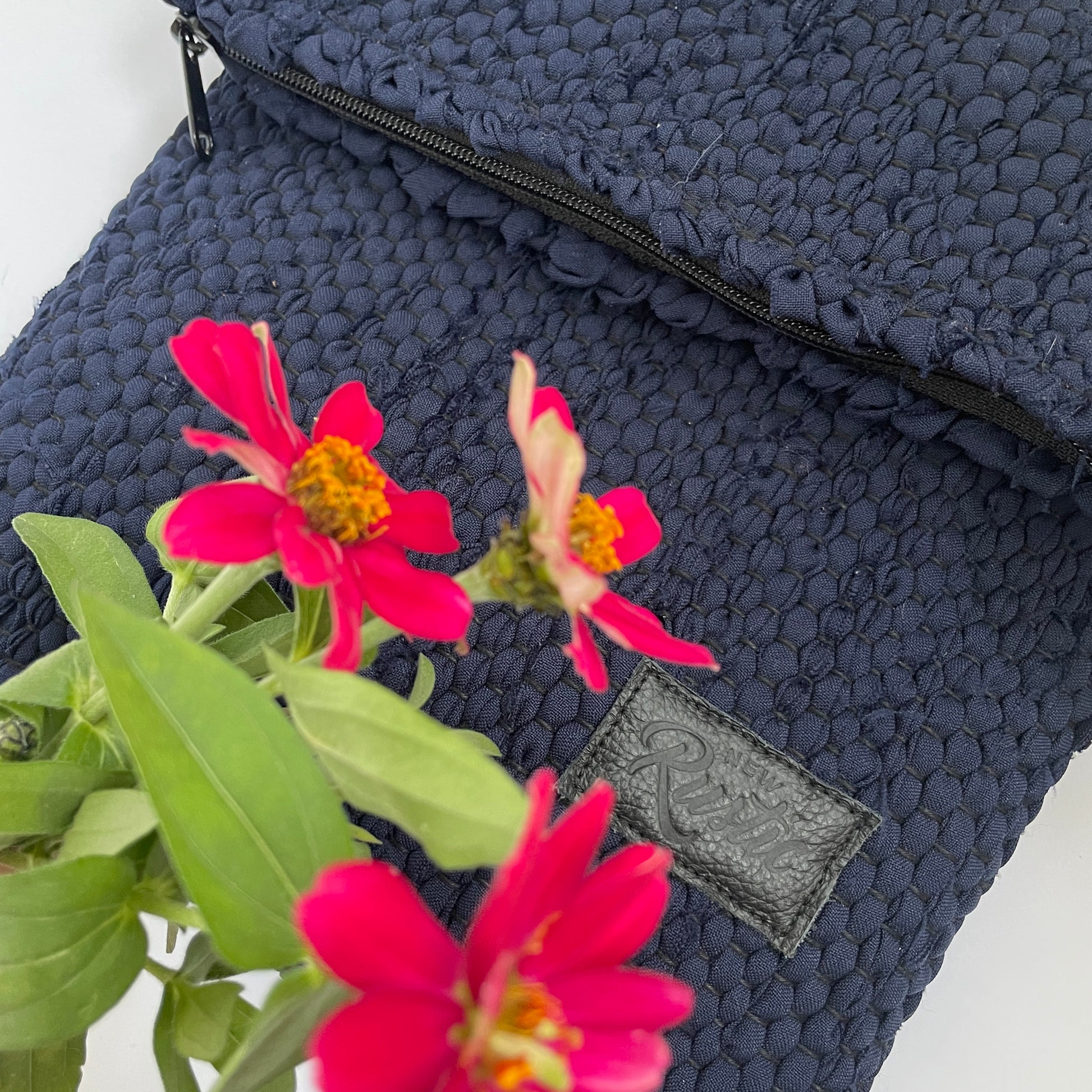 Kangastelgedel kootud koti kangas on tumesinine. Koti nahast sang ja detailid on mustad. Koti valmimiseks kasutatud kangas pärineb tarbijajärgsest tekstiilijäägist ja nahk pärineb mööblitootmisest tekkivast jäägist.