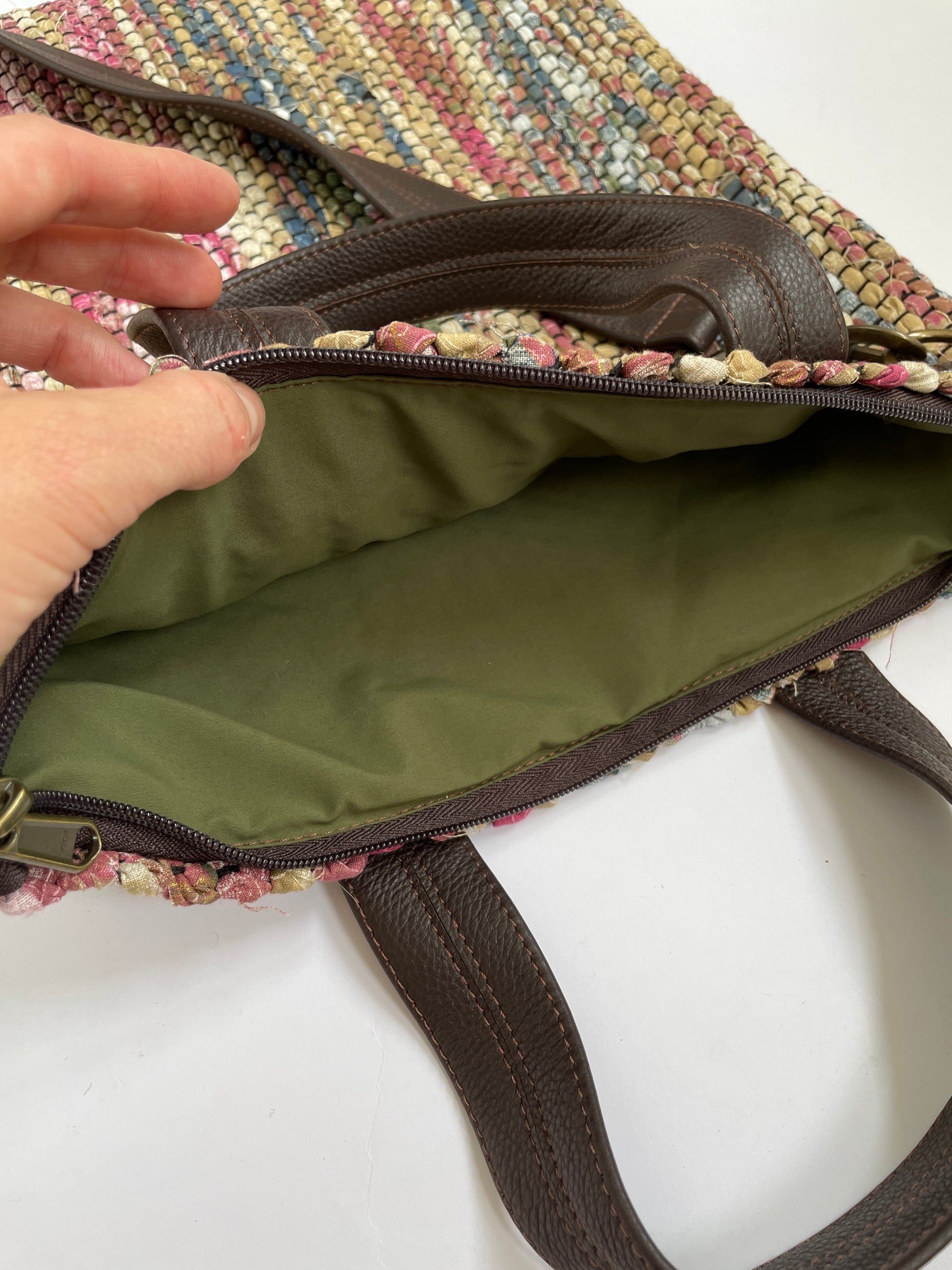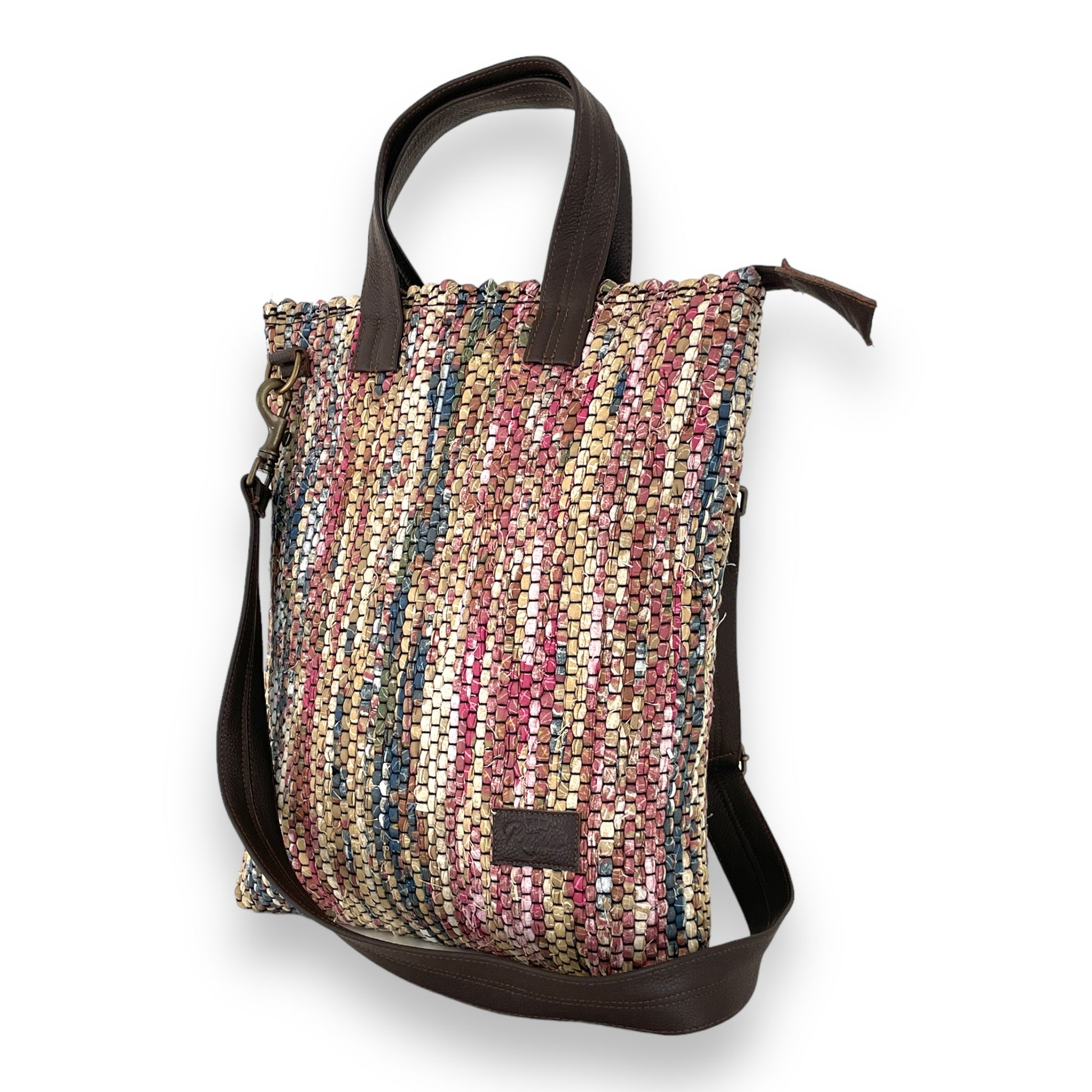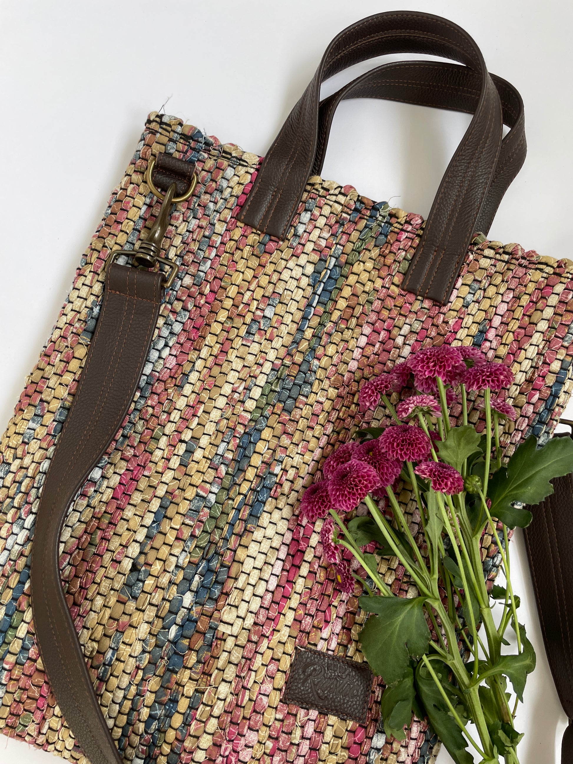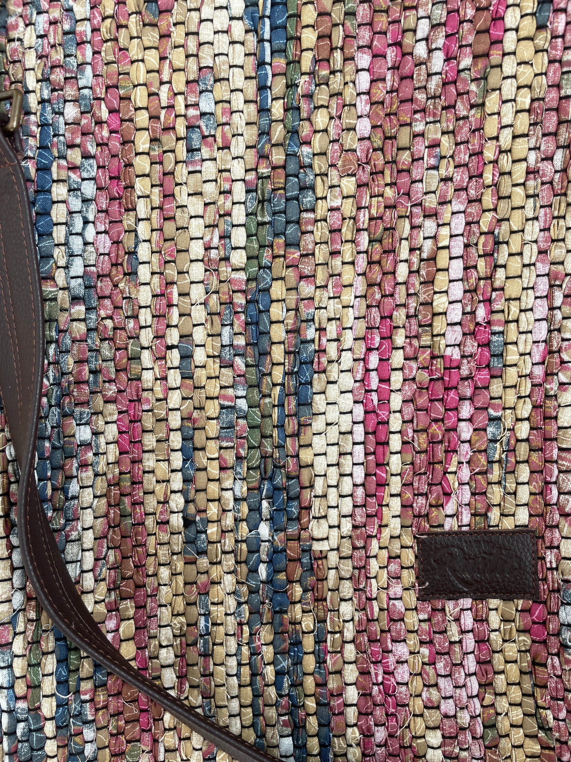 Kangastelgedel kootud koti kangas on kaunites soojades toonides, esindatud värvid on pruun, roosa, sinine ja kollane. Koti nahast detailid on tumepruunid. Koti valmimiseks kasutatud kangas pärineb tarbijajärgsest tekstiilijäägist ja nahk pärineb mööblitootmisest tekkivast jäägist.