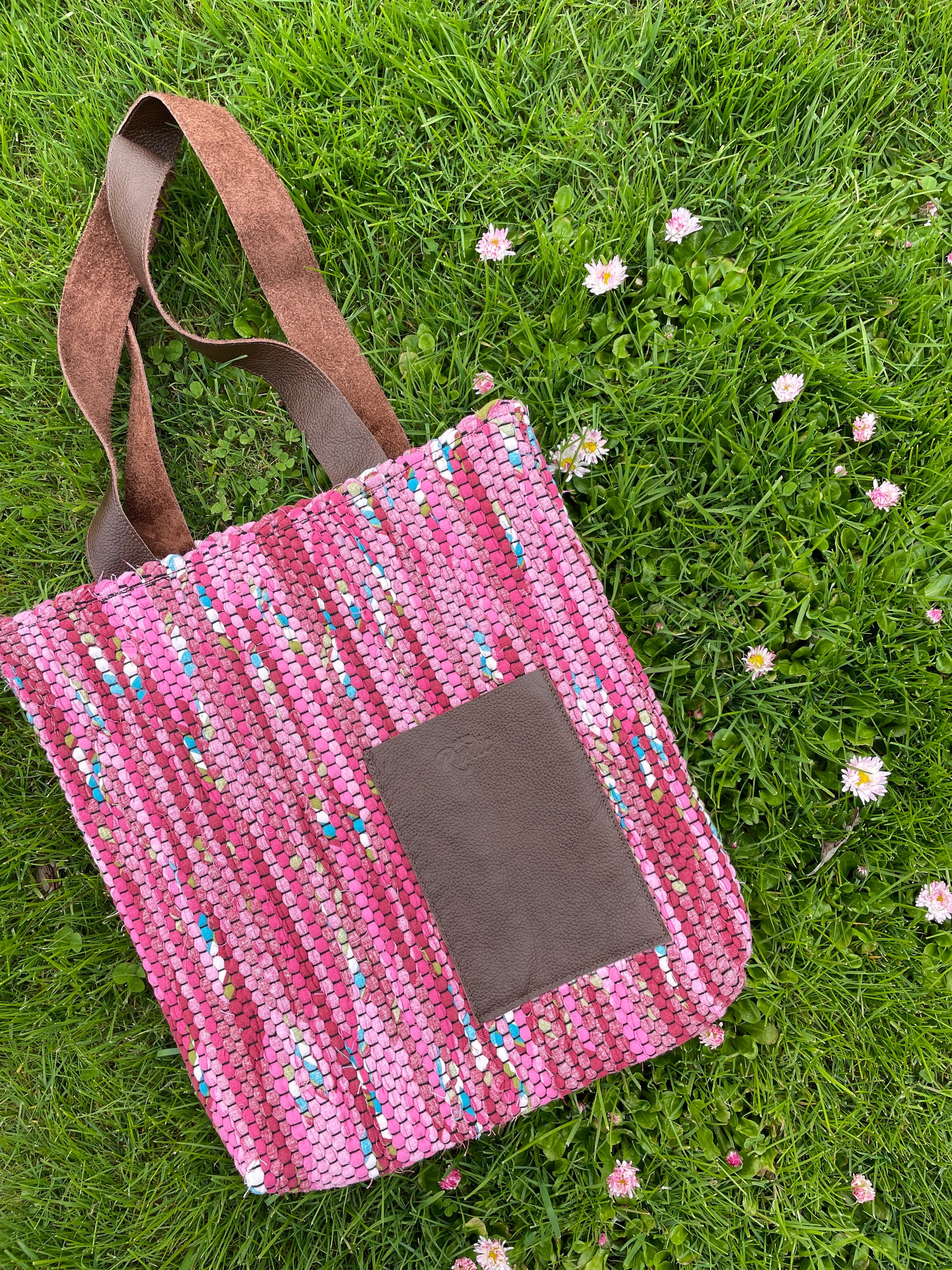 Kangastelgedel kootud koti kangas on punase-roosa kirju, efekti loovad helesinised ja -rohelised täpid. Koti nahast detailid on tumepruuni värvi. Koti valmimiseks kasutatud kangas pärineb tarbijajärgsest tekstiilijäägist. Sangade ning välise tasku nahk pärineb mööblitootmisest tekkivast jäägist.